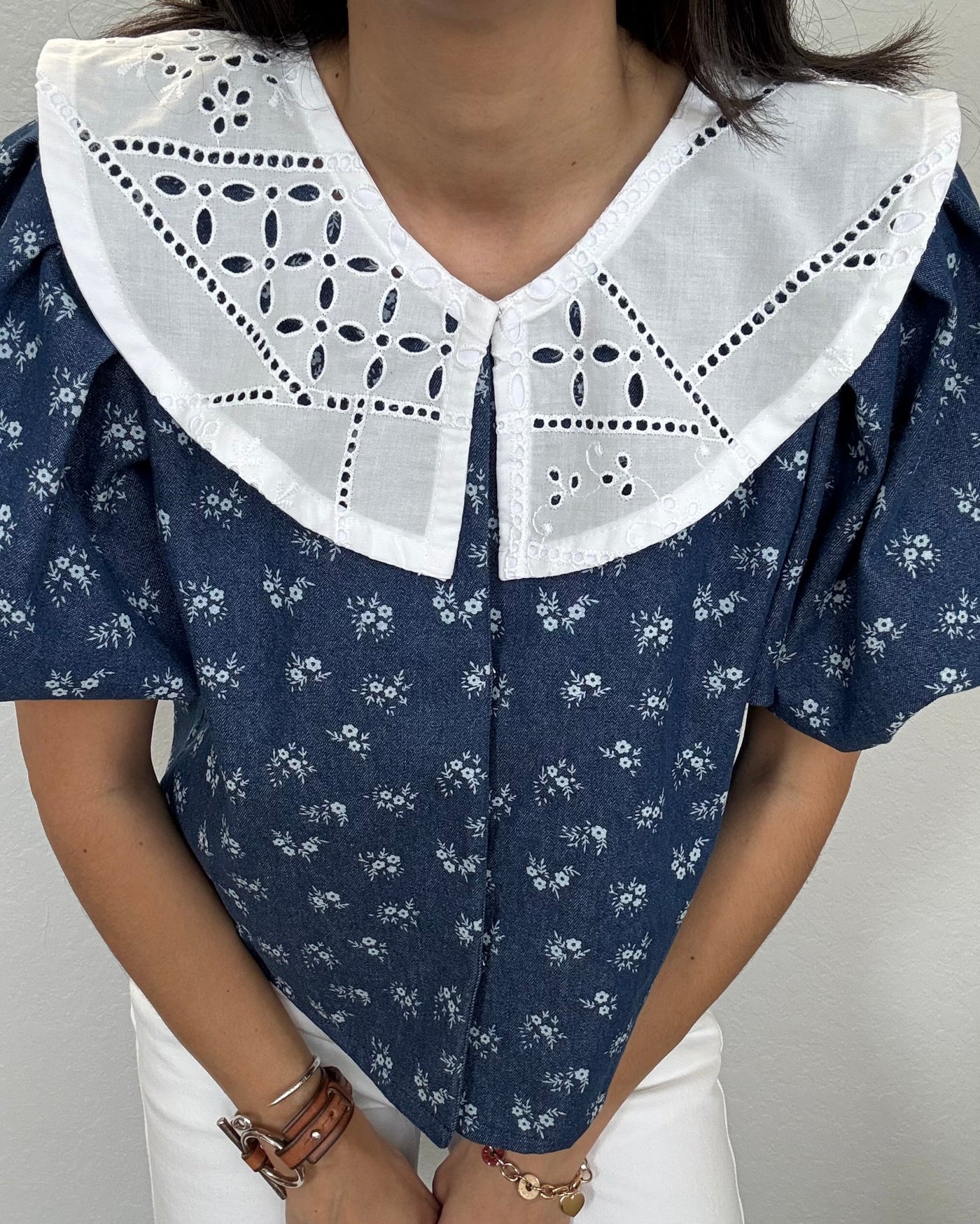 Cuello removible en tel aeyelet 100% algodón y cierre en broche de presión